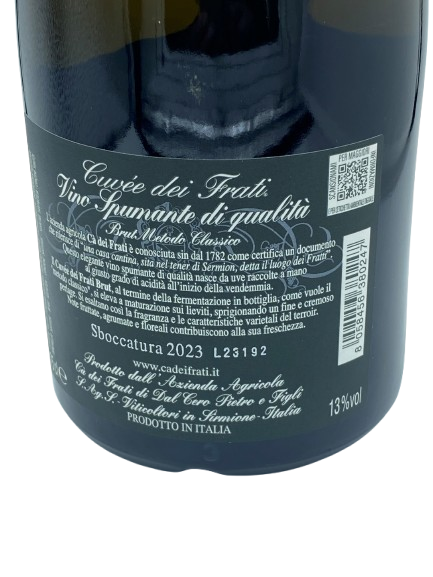 Het wijnhuis Ca ‘dei Frati gaat terug tot 1782 als de plek met de wijnkelder in Lugana. Sinds 1969 werd DOC Lugana officieel opgericht en werd de eerste fles gebotteld. Inmiddels wordt het wijnhuis geleid door de 4e generatie. Alles wordt toegewijd met respect voor de natuur. De druiven groeien op kalkrijke en kleiachtige bodems en worden handmatig geoogst en daarna direct geperst met de fermentatie gedeeltelijk in RVS tanks en gedeeltelijk op Barriques. Het sap ondergaat minimaal 24 maanden rijping op de droesem, waarna nog een rijping van 4 maanden in de fles. De Methode Classico wordt hierbij toegepast, de tweede vergisting op de fles hierdoor ontstaat de verfijnde mousse en complexiteit, en dan het moment van genieten, ogen dicht en ervaar de magie van Cà Dei Frati Cuvée Dei Frati Sboccatura 2023.