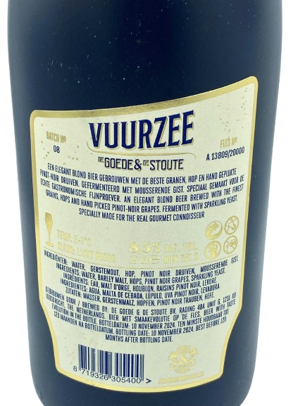 De zoute zeelucht en zilte bodem zorgen voor een fris en mineraal karakter. De Vuurzee is met uitstek geschikt om te combineren bij culinaire gerechten. Vuurzee is van hoge gisting en elke fles krijgt 3-4 maanden rijping. Weer iets totaal nieuws waar je goed mee voor de dag kan komen! Leuk als cadeau, maar ook geweldig om te serveren bij een Dinner.